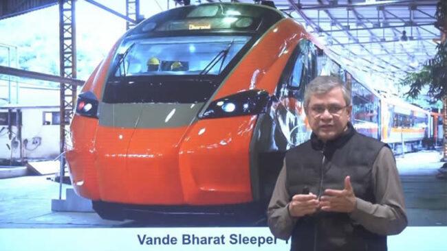 केंद्रीय रेल्वेमंत्री अश्‍विनी वैष्षण यांची घोषणानवी दिल्ली ः भारतीय रेल्वेच्या वंदे भारत ट्रेन सेटचे स्लीपर व्हर्जन तयार आहे आणि या महिन्यात त्या