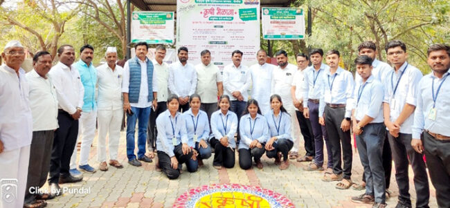 कार्यक्रमाच्या अध्यक्षस्थानी महाविद्यालयाचे प्राचार्य प्रा. डॉ. के. एच. निंबाळकर होते. उद्घाटन संस्थेचे अध्यक्ष दत्तात्रय भाऊसाहेब पानसरे व सचिव अर्चना दत्तात्रय पानसरे यांच्या हस्ते करण्यात आले. ग्रामीण कृषी जागरूकता कार्यानुभव कार्यक्रम 2025-26 अंतर्गत कृषीकन्या अनिशा रुपनवर, स्नेहल आचार्य, पुनम गायकवाड, प्रणाली मादनकर, प्रणोती महारनवर तसेच कृषीदूत कुणाल काळभोर, यशराज काळाणे, प्रतीक जठार, मनमोहन देवीकर, वैभव कोकरे व अभिजीत क्षीरसागर यांनी या मेळाव्याचे आयोजन केले. मार्गदर्शन करताना प्रा. डॉ. के. एच. निंबाळकर यांनी पिकांचे बाजारभाव, आधुनिक शेती तंत्रज्ञान, मशागत व कीड-रोग नियंत्रण याबाबत सविस्तर माहिती दिली. गाव पातळीवर शेतकरी समिती स्थापन करून नियोजनबद्ध पीक पद्धती राबविल्यास उत्पादन वाढीस मदत होईल, असे त्यांनी नमूद केले. मेळाव्याचे प्रमुख आकर्षण म्हणून सिजेंटा, बायस्टेट, बी.ए.एस.एफ., बायर, कोरोमंडल आदी नामांकित कृषी औषध कंपन्यांचे माहितीपर स्टॉल लावण्यात आले होते. या कार्यक्रमास तालुका कृषी अधिकारी क्रांती चौधरी, मंडळ कृषी अधिकारी शितल आरु, कृषी सहाय्यक अधिकारी किरण घोडके, संचालक सुभाष शिंदे, सरपंच प्रमोद शिंदे, सरपंच प्रसाद महाडिक, चेअरमन सुमन मांडे, पंडित कातोरे, बाळासाहेब मांडे, उपसरपंच राजकुमार उंडे, राहुल साळवे, व्हा. चेअरमन शरद शिंदे, युवा उद्योजक सचिन कातोरे, संदीप औटी,  संतोष पानसरे, फुलसिंग मांडे यांच्यासह कार्यक्रम समन्वयक प्रा. शैलजा औटी, प्रा. नागेश जाधव, प्रा. सुप्रिया बंडगर आदी उपस्थित होते.