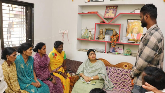दाभड महिला कलावतीबाई तारडे यांचा अज्ञात वाहनाच्या धडकेत मृत्यू झाला होता.त्यांच्या घरी जाऊन तारडे कुटुंबीयांचे आ.श्रीजया चव्हाण यांनी सांत्वन केले. यावेळी गावकर्यांनी आम्हाला राष्ट्रीय महामार्गावरून प्रवास करतांना जिव मुठीत धरून रस्ता क्रॉस करावा लागतो.यासाठी येजा करण्यासाठी भुयारी पूल किंवा पर्यायी मार्ग विना अपघात मुक्त रस्ता उपलब्ध करून द्यावा जेणेकरून अपघातात बळी जाणार नाही यासाठी राष्ट्रीय महामार्गाच्या अधिकार्यांशी बोलून सुरक्षित रस्ता उपलब्ध करून द्यावा अशी मागणी गावकर्यांनी केली. यावेळी तालुकाध्यक्ष बालाजी गव्हाणे, माजी उपनगराध्यक्ष राजेश्वर शेटे,शंकर टेकाळे,संजय पाटील टेकाळे,राजू टेकाळे,गणेश तरटे,अजय देशमुख,उमाकांत सरोदे,स्वप्निल टेकाळे, पवन इंगोले, विलास साबळे,योगेश हळदे,शंकर ढगे,रवी सूर्यवंशी,आकाश सूर्यवंशी,गोविंद गोदरे यांच्यासह गावकरी मंडळी उपस्थित होते.