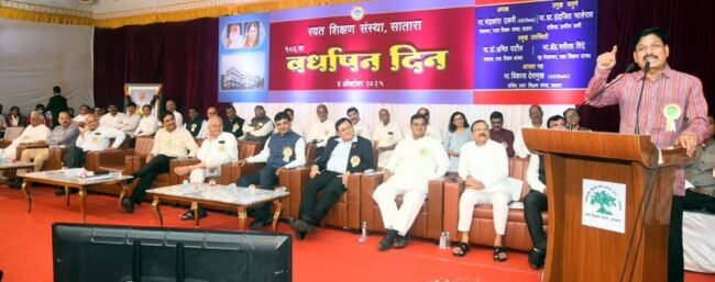 सातारा / प्रतिनिधी : शिक्षणाच्या माध्यमातून ग्रामीण भागाचा विकास हे रयत शिक्षण संस्थेचे उद्दिष्ट आहे. कर्मवीर भाऊराव पाटील यांनी शंभर वर्षांपूर्वी स्थापन केलेल्या या संस्थेचे उद्दिष्ट शंभर वर्षानंतरही तसूभर बदलले नाही. रयत शिक्षण संस्था ही अशा प्रकारची महाराष्ट्रातील एकमेव संस्था आहे. स्थापनेपासून आजही शिक्षण हाच ’रयत’चा धर्म राहिला आहे, असे प्रतिपादन प्रसिध्द ग्रामीण कवी इंद्रजीत भालेराव यांनी केले. रयत शिक्षण संस्थेच्या 106 व्या वर्धापन दिन समारंभात प्रमुख पाहुणे म्हणून ते बोलत होते. अध्यक्षस्थानी संस्थेचे चेअरमन चंद्रकांत दळवी हे उपस्थित होते. याप्रसंगी संस्थेचे व्हा. चेअरमन अॅड. भगीरथ शिंदे, संघटक डॉ. अनिल पाटील, कुलगुरू डॉ. ज्ञानदेव म्हस्के, कर्मवीर कुटुंबीय, संस्थेचे मॅनेंजिंग कौन्सिल सदस्य माजी खासदार रामशेठ ठाकूर, जे. के. जाधव, प्रभाकर देशमुख, सदाशिव कदम, भैय्यासाहेब जाधव, अरुण पवार, प्रशांत पाटील, यशवंत पाटणे इत्यादी मान्यवर उपस्थित होते.