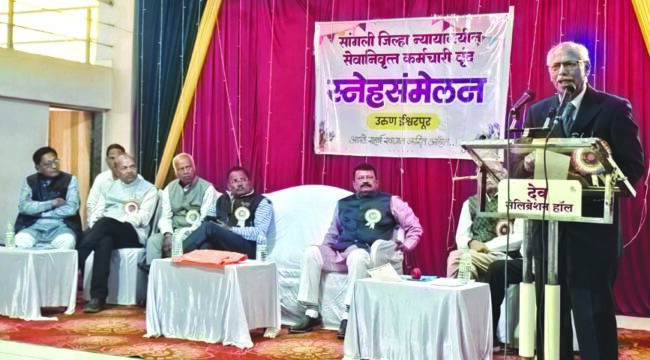 ते सांगली जिल्हा न्यायालय सेवानिवृत्त कर्मचारी स्नेहसंमेलनात अध्यक्षस्थानी बोलत होते. यावेळी अतिरिक्त जिल्हा व सत्र न्यायाधीश पंढरपूरचे एस. जी. नदीमठ, माजी प्राचार्य डॉ. राजेंद्र कुरळूपकर, सेवानिवृत्त अधीक्षक चंद्रकांत मोडक, बाजीराव शिपुरे, सेवानिवृत्त जिल्हा न्यायाधीश एल. एन. बोर्डे, व्ही. के. मुर्गे, कामखेडकर, एस. डी. जगताप यांची प्रमुख उपस्थिती होती.