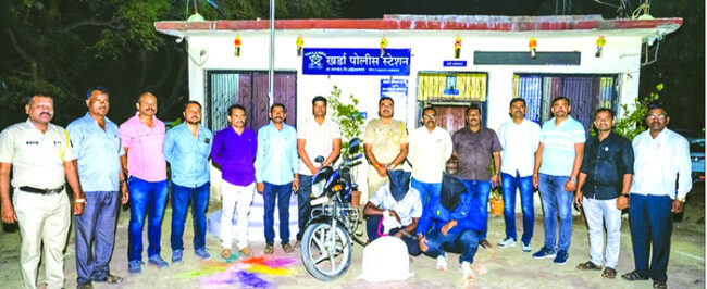 दोघे जेरबंद; साडेतीन लाखांचा मुद्देमाल जप्त, स्थानिक गुन्हे शाखेची कारवाई जामखेड : अहिल्यानगर जिल्हा पोलीस अधीक्षक सोमनाथ घार्गे यांच्या आदेशानुसार जिल्ह्यात अंमली पदार्थांविरोधात कडक कारवाई सुरू असून, त्याचाच भाग म्हणून जामखेड तालुक्यातील खर्डा पोलीस ठाणे हद्दीतील तरडगाव येथे करण्यात आलेल्या कारवाईत सुमारे साडेतीन लाख रुपयांचा मुद्देमाल जप्त करण्यात आला आहे. या कारवाईत गांजा विक्रीसाठी वाहतूक करणाऱ्या दोघांना पोलिसांनी अटक केली आहे. स्थानिक गुन्हे शाखेला मिळालेल्या गुप्त माहितीच्या आधारे टास्क फोर्सचे नोडल अधिकारी पोलीस निरीक्षक किरणकुमार कबाडी यांच्या नेतृत्वाखाली विशेष पथक तयार करण्यात आले. पोलीस उपनिरीक्षक अनंत सालगुडे, श्यामसुंदर जाधव, समीर अभंग, हृदय घोडके, संतोष खैरे, गणेश लबडे, मनोज साखरे, भाऊसाहेब काळे, अमोल कोतकर व चालक महादेव भांड आदींच्या पथकाने माहिती संकलन करून कारवाईचे नियोजन केले. गुप्त बातमीदाराकडून हिरो सीडी डिलक्स मोटारसायकलवरून तरडगाव फाट्याहून गांजा विक्रीस नेला जात असल्याची माहिती मिळाल्यानंतर ही माहिती खर्डा पोलीस ठाण्याला देण्यात आली. त्यानुसार सहाय्यक पोलीस निरीक्षक उज्वलसिंह राजपूत, संभाजी शेंडे, शेषराव म्हस्के, बाळू खाडे, धनराज बिराजदार व शकील बेग यांच्या संयुक्त पथकाने तरडगाव फाट्यावर सापळा रचला. पोलिसांनी संशयित दुचाकीस्वारांना थांबवून झडती घेतली असता गोणीत हिरवट पाने, फुले व बोंडे असलेला ९.८५४ किलो गांजा आढळून आला. चौकशीत आरोपींनी आपली नावे सचिन नवनाथ गायकवाड (वय २५, रा. पिंपरखेड, ता. जामखेड) व सुक्षय ऊर्फ सोमा सुनील काळे (वय २३, रा. खर्डा, ता. जामखेड) अशी सांगितली. सदर गांजा माहीजळगाव (ता. कर्जत) येथील शुभम घुंगरे याच्याकडून विक्रीसाठी आणल्याची कबुली त्यांनी दिली असून, घुंगरे हा सध्या फरार आहे. या कारवाईत आरोपींकडून २ लाख ४५ हजार ४७५ रुपये किमतीचा ९.८५४ किलो गांजा, ३० हजार रुपये किमतीचे दोन मोबाईल, १ हजार रुपये रोख रक्कम व ७० हजार रुपये किमतीची मोटारसायकल असा एकूण ३ लाख ४६ हजार ४७५ रुपयांचा मुद्देमाल जप्त करण्यात आला आहे. या प्रकरणी पोलीस नाईक श्यामसुंदर जाधव यांच्या फिर्यादीवरून खर्डा पोलीस ठाण्यात गुन्हा दाखल करण्यात आला असून, पुढील तपास खर्डा पोलीस करीत आहेत.