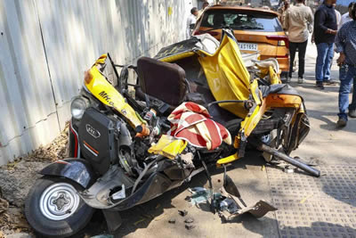 ऑटो आणि कारचा चेंदामेंंदा ; 4 जण झाले जखमीमुंबई ः मुंबईतील मुलुंड परिसरात शनिवारी लाल बहादूर शास्त्री मार्गावर सुरू असलेल्या मेट्रो मार्गिकेच्या क