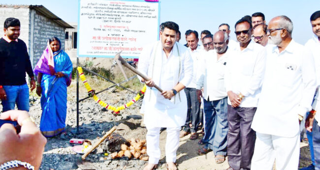 माहेगाव देशमुख येथे रस्ता, शाळा खोल्यांचे भूमिपूजन