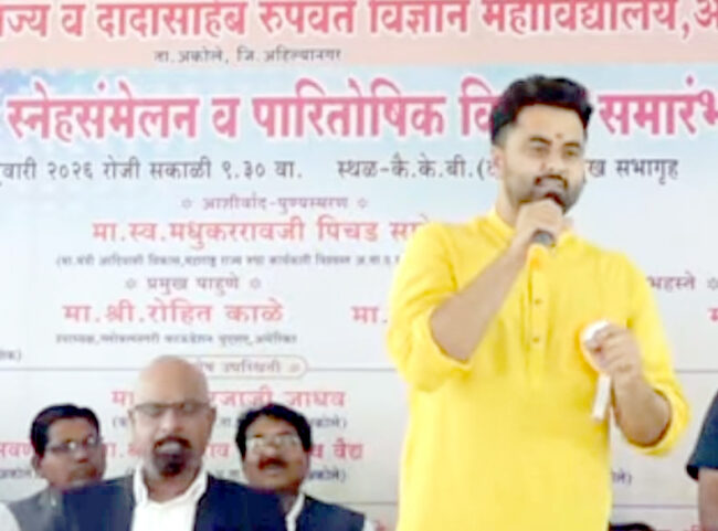 अगस्ती महाविद्यालयाचे प्राचार्य डॉ.भास्कर शेळके यांनी स्वागत आणि प्रास्ताविक करताना महाविद्यालयातील नव्या युगाच्या जडणघडणीतील विविध उपक्रमांचा तसेच राज्य स्तरावरील विद्यार्थ्यांच्या यशस्वी प्रगतीचा उंचावणारा आलेख व्यक्त केला. कार्यक्रमाचे अध्यक्ष अकोले ता. एज्युकेशन सोसायटीचे कायम विश्वस्त गिरजाजी जाधव यांनी महाविद्यालयीन प्रगतीत प्राचार्य डॉ. शेळके यांनी पार पाडलेल्या कार्यपद्धतीचे कौतुक केले.
