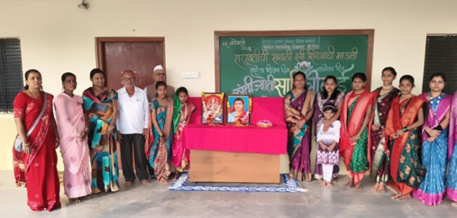 श्रीगोंदा : ज्ञानज्योती सावित्रीबाई फुले यांच्या १९५ व्या जयंती निमित्त ३ जानेवारी रोजी श्रीगोंदा माध्यमिक (ज्ञानदीप) विद्यालयामध्ये क्रांतीज्योती सावित्रीबाई फुले यांची जयंती साजरी करुन विद्यालयामध्ये बाल आनंद मेळावा मोठ्या उत्साहात साजरा करण्यात आला. बाल आनंद मेळाव्यानिमित्त विद्यालयामध्ये रांगोळी स्पर्धेचे आयोजन करण्यात आले होते. या कार्यक्रमासाठी श्रीगोंदा नगरपालिकेच्या नवनिर्वाचित नगरसेविका मनीषा आनंदकर यांनी अध्यक्षस्थान भूषविले. तसेच नगरसेविका सोनाली गोरे या प्रमुख पाहुणे म्हणून उपस्थित होत्या. कार्यक्रमासाठी सर्व विद्यार्थ्यांचा उत्स्फूर्त प्रतिसाद मिळाला.त्याबद्दल विद्यालयाचे मुख्याध्यापक आनंदकर बी.बी., सर्व शिक्षक शिक्षकेतर कर्मचारी, सेवकवृंद आणि पालक यांनी सर्वांचे कौतुक केले. याप्रसंगी नगरसेविका गोरे यांनी विद्यार्थ्यांना खाऊ वाटप केले.