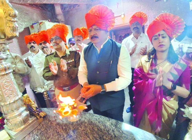 सकाळी जिल्हाधिकारी संतोष पाटील, मुख्य कार्यकारी अधिकारी याशनी नागराजन, पोलीस अधीक्षक तुषार दोशी, उपवनसंरक्षक अमोल सातपुते यांच्या हस्ते भक्तिमय वातावरणात आई भवानी मातेची महापूजा करण्यात आली. पुजारी शंकर गुरुजी यांनी पौरोहित्य केले.