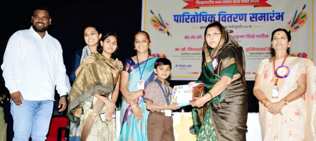 राहाता : पद्मश्री डॉ. विठ्ठलराव विखे यांच्या जयंतीनिमित्त आयोजित करण्यात आलेल्या “जिल्हास्तरीय भव्य ललित कला स्पर्धा २०२५” (११ वे वर्ष) चा पारितोषिक वितरण समारंभ गंगुबाई विखे इनडोअर स्टेडियम, लोणी येथे उत्साहात पार पडला. या वेळी शालिनी विखे व डॉ. सुस्मिता विखे यांच्या हस्ते पारितोषिके प्रदान करण्यात आली. या स्पर्धेत जिल्हा परिषद प्राथमिक शाळा, अस्तगाव येथील इयत्ता तिसरीचा विद्यार्थी श्रेयश जॉन त्रिभुवन याने चित्रकला गट ‘अ’ (इयत्ता पहिली ते चौथी) मध्ये राहाता तालुकास्तरावर तृतीय क्रमांक पटकावला. या यशाबद्दल त्याला सन्मानचिन्ह, प्रमाणपत्र व शालेय साहित्य देऊन गौरविण्यात आले. भाजप राहाता तालुका अनुसूचित जाती मंडल अध्यक्ष जॉन युवराज त्रिभुवन यांचे ते चिरंजीव आहेत. श्रेयशच्या यशाबद्दल अस्तगाव ग्रामस्थ व जिल्हा परिषद प्राथमिक केंद्रशाळा, अस्तगाव येथील शिक्षकवृंदांच्या वतीने त्याचे अभिनंदन व सत्कार करण्यात येत आहे. या यशामुळे शाळेचे व गावाचे नाव तालुकास्तरावर उज्ज्वल झाले आहे. या स्पर्धेसाठी शाळेचे मुख्याध्यापक सहाणे यांच्यासह शेळके, भुतकर, कर्डिले, सगभोर, जाधव, गीते, नळे, गमे, दातीर, गोर्डे, ढूस, भांड, कहाणे, पंडित, मोरे, निळे आदी शिक्षकांनी विशेष परिश्रम घेतले. कर्मवीर काळे विद्यालयाचा रेखाकला परीक्षेत १०० टक्के निकाल कोपरगाव शहर : महाराष्ट्र राज्य कला शिक्षण मंडळ मुंबई यांच्या मार्फत घेण्यात येणारी शासकीय रेखाकला ग्रेड परीक्षेचा निकाल नुकताच जाहीर झाला. यात करंजी येथील रयत शिक्षण संस्थेच्या कर्मवीर शंकररावजी काळे माध्यमिक विद्यालयाचा या परीक्षेचा निकाल शंभर टक्के लागला आहे. या परीक्षेत एलिमेंट्री या परीक्षेत अकरा विद्यार्थी सहभागी झाले होते त्यात अ श्रेणीत १, ब श्रेणीत ६ तर सी श्रेणीत ४ विद्यार्थी उत्तीर्ण झाले आहेत. तसेच इंटरमिजिएट या परीक्षेत एकूण २८ विद्यार्थी प्रविष्ट झाले होते त्यांचाही निकाल शंभर टक्के लागला आहे. यात अ श्रेणीत ५ ,ब श्रेणीत ११ , सी श्रेणीत १२ विद्यार्थी उत्तीर्ण झाले आहेत. या मिळालेल्या श्रेणीचा उपयोग या विद्यार्थ्यांना एसएससी बोर्डाच्या परीक्षेमध्ये वाढीव गुण मिळण्यास होतो. ज्या विद्यार्थ्यास अ श्रेणी आहे त्यास ७ गुण, ब श्रेणी असलेल्या विद्यार्थ्यास ५ गुण,व क श्रेणी असलेल्या विद्यार्थ्यास ३ गुण जास्तीचे मिळतात. या सर्व यशस्वी विद्यार्थ्यांना कलाशिक्षक संदीप चव्हाण यांचे मार्गदर्शन लाभले तर सर्व यशस्वी विद्यार्थ्यांचे विद्यालयाचे मुख्याध्यापक माळी डी एम तसेच स्थानिक शाळा समितीचे अध्यक्ष कारभारी आगवण, सांडूभाई पठाण, डॉ. सुनील देसाई यांच्यासह पंचक्रोशीतील शिक्षण प्रेमी नागरिक यांनी कौतुक केले आहे.