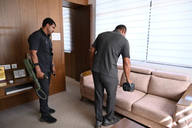 बॉम्ब शोधक पथकातील ‘लुसी’ व ‘जंजीर’ या श्वानांच्या मदतीने तसेच अत्याधुनिक बॉम्ब शोधक यंत्रणेद्वारे कार्यालयाच्या सहा मजली इमारतीची तपासणी करण्यात आली. यामध्ये सर्व मजले, जिने, लिफ्ट, पार्किंग व संपूर्ण परिसराचा समावेश होता. या शोधमोहिमेत अग्निशमन दल व एसआयडी (SID) पथकाचेही सहकार्य लाभले.