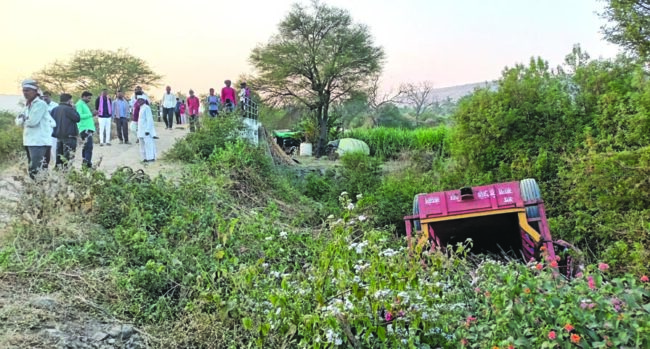 गोपूज : पुलावरून कोसळलेला ऊसाचा ट्रॅक्टर.