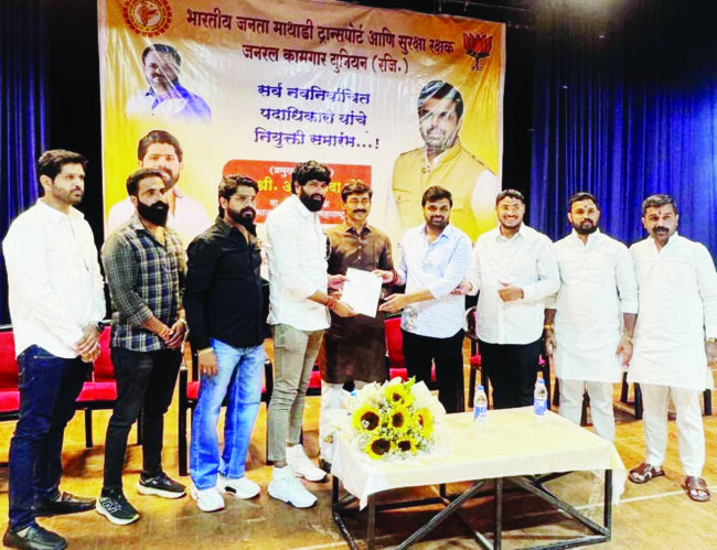 सुपा : भारतीय जनता पार्टीचे युवा नेते दीपक ठोंबरे यांची भारतीय जनता माथाडी ट्रान्सपोर्ट आणि सुरक्षारक्षक जनरल कामगार युनियन (पारनेर तालुका) या संघ